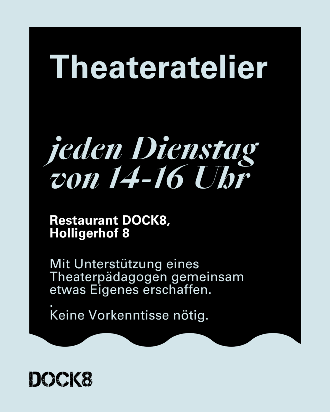 Treffpunkt: Restaurant DOCK8. Dann gehen wir gemeinsam in den Bewegungsraum.